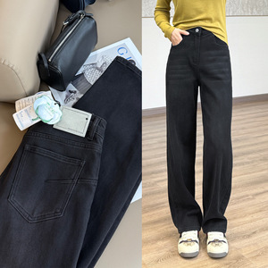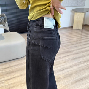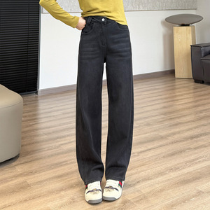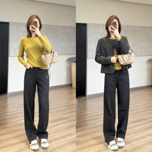 朵妮DN 小个子窄弯刀裤 双侧缝显瘦百搭黑灰色牛仔裤松松弛感长裤