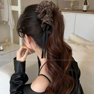 韩系豹纹网纱香蕉夹发夹女2025新款高马尾抓夹后脑勺鲨鱼夹子头饰