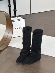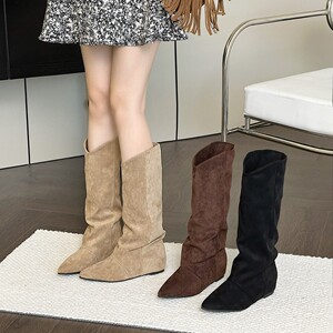 不过膝长靴女2025秋冬新款堆堆裤管靴尖头高筒骑士靴西部牛仔靴子