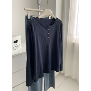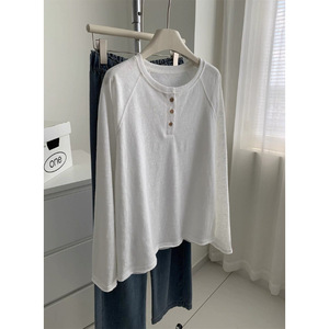 特大码300斤纯棉长袖T恤女显瘦插肩袖圆领打底衫秋上衣