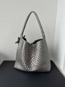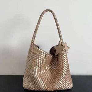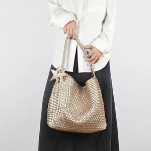 枪枪同款香槟色编织纹托特包包女大容量大包感手提单肩水桶包