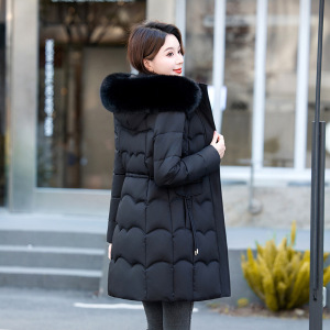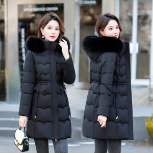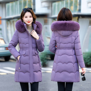 外贸新款大毛领棉袄25冬季外套时尚中长款保暖连帽棉衣显瘦棉服女