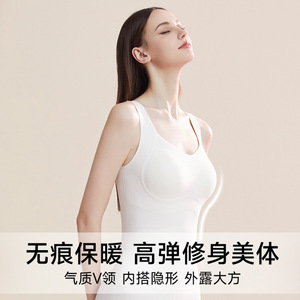 88688秋冬保暖背心带胸垫一体吊带加绒加厚无痕内搭打底衫内衣女