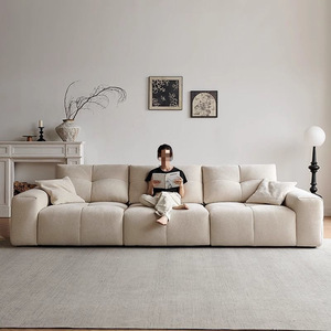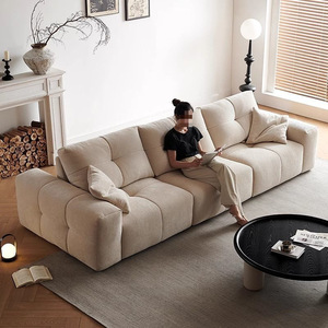 雪尼尔沙发意式极简超大坐深可躺落地直排沙发豆腐块花瓣布艺沙发