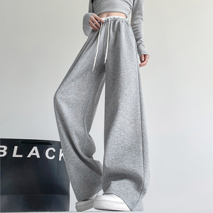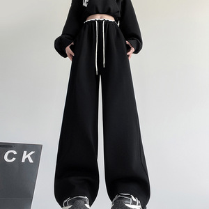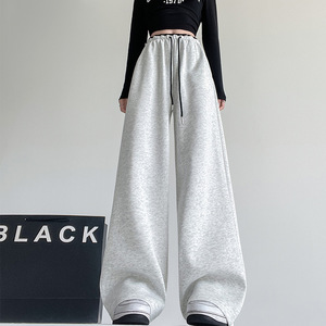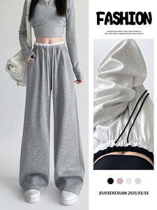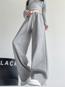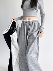 美式阔腿运动裤女秋2025新款松紧高腰宽松垂感显瘦拖地休闲卫裤