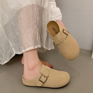 懒人勃肯春夏季一脚蹬穆勒凉拖鞋外穿包头半拖鞋女厚底2025年皮面