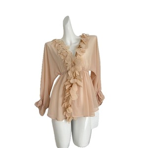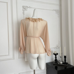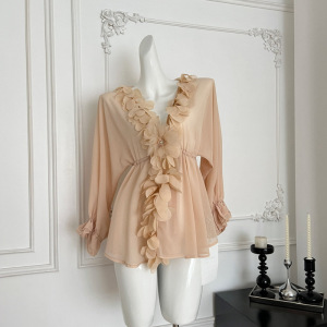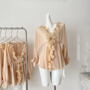 法式千金风名媛高级感网纱V领长袖衬衫女2025春季新款宽松上衣ins