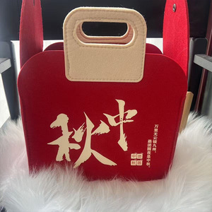中秋节日毛毡包毛毡礼品袋中国红毛毡手提袋企业福利伴手礼托特包