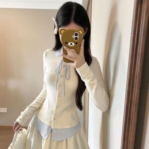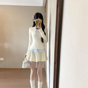 2025秋季新款韩系学院风套装假两件拼接长袖上衣女高腰短裙两件套