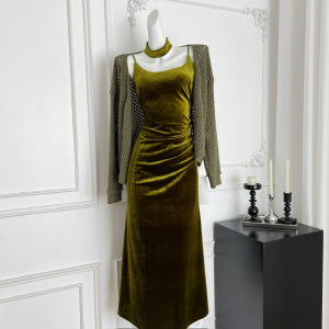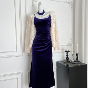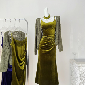秋季新款2025丝绒鱼尾裙女气质连衣裙a字长裙子