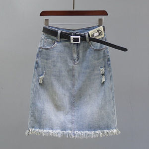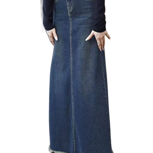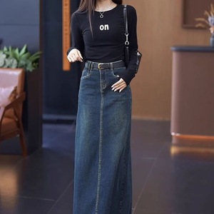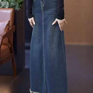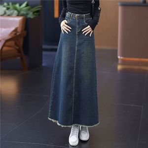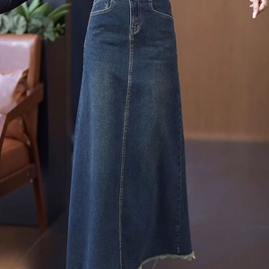 牛仔长裙女早秋2025新款复古高腰显瘦过膝毛边半身裙子包臀a字裙