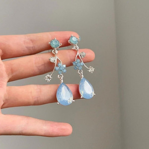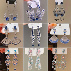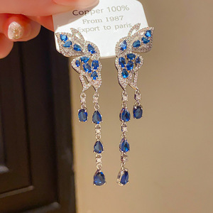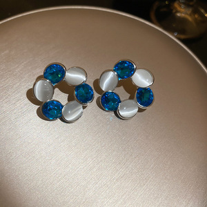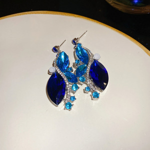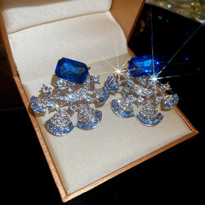 蓝色系列银针锆石几何耳环轻奢高级感重工耳钉设计感小众夸张耳饰