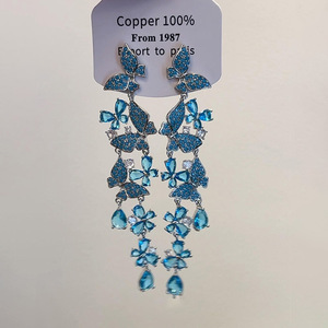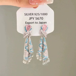 23#银针锆石珍珠蝴蝶水滴耳钉