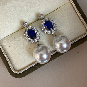 24#银针镶钻椭圆琉璃珍珠耳钉