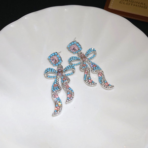 26#银针镶钻珍珠蝴蝶结苏耳钉