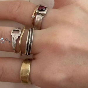 设计感复古做旧钥匙轨道戒指女韩系轻奢小众时尚潮流百搭指环戒子