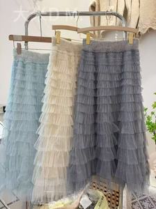 网纱荷叶边气质半身裙女装欧洲站2025秋冬新款名媛长裙显瘦蛋糕裙