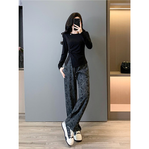 深圳南油韩系早秋穿搭一整套欧货小个子运动休闲阔腿裤两件套女