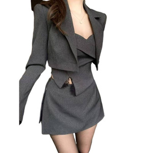 韩系新款气质套装短款显瘦西装外套女内搭吊带夏季半身短裙两件套