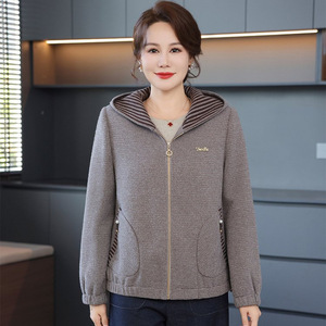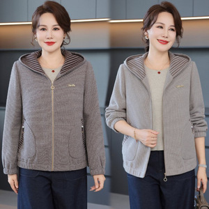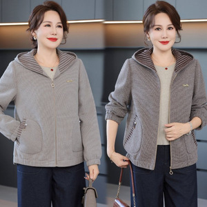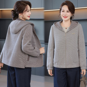 妈妈秋冬时尚休闲连帽外套新款中年女装秋冬保暖洋气百搭高贵上衣