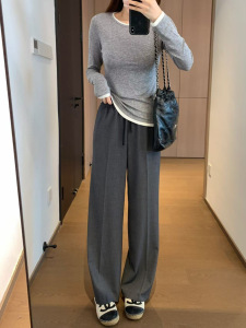 M家同款! 气质挺阔天丝羊毛混纺直筒版绳松紧腰阔腿气质西装裤