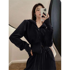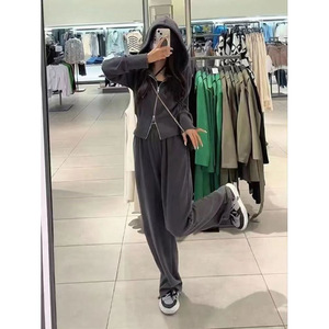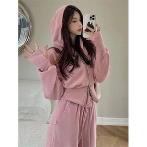 运动套装女2025秋季新款韩版宽松网红休闲卫衣拉链+阔腿裤两件套