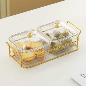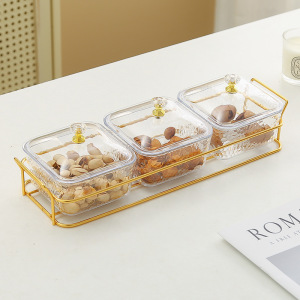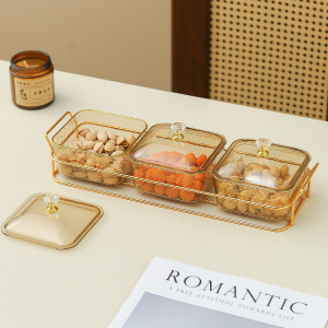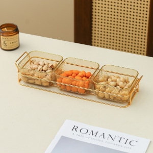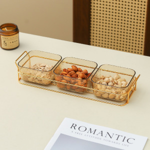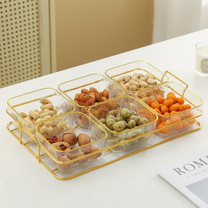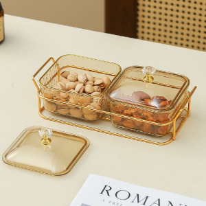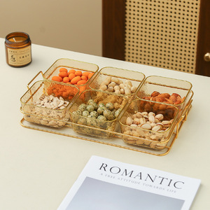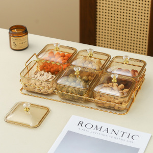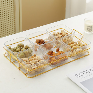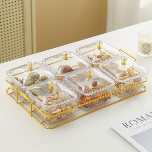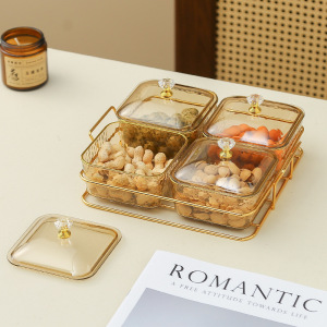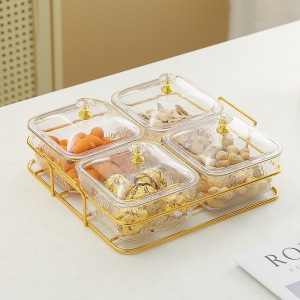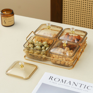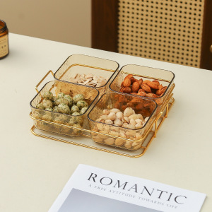 高档水果盘客厅家用零食摆放四宫格干果盘坚果收纳盒茶点小吃拼盘