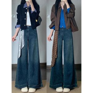 不贴腿微喇牛仔裤女秋季新款胖妹妹梨型身材高腰显瘦直筒喇叭裤