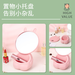 镜子桌面储物化妆镜可爱粉色兔子学生宿舍卧室桌面镜镜子放桌子上