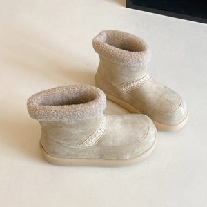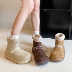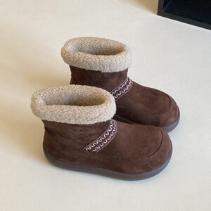 羊皮版~复古风圆头厚底雪地靴女2025新款冬季加绒保暖短筒面包鞋