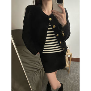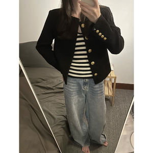 法式气质名媛黑色小香风外套2025春秋新款时尚百搭高级感短款上衣