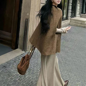 巨好看的早秋上衣女2025新款斗篷披肩外搭小香风外套+连衣裙套装