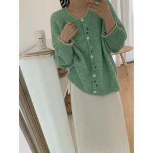 KANING韩版彩扣撞色软糯针织开衫2025秋冬新款宽松显瘦圆领毛衣女
