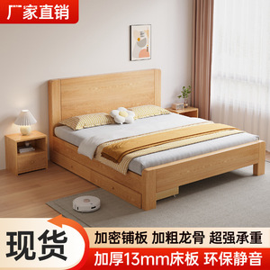 床实木床双人1.8x2米主卧大床家用1.5米小户型出租房1.2m单人床架