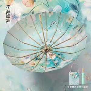 抖音爆款32骨新中式古风折叠晴雨伞女晴雨两用防晒防紫外线太阳伞