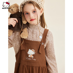 HelloKitty凯蒂猫女童秋季套装2025新款森系田园复古背带裙两件套