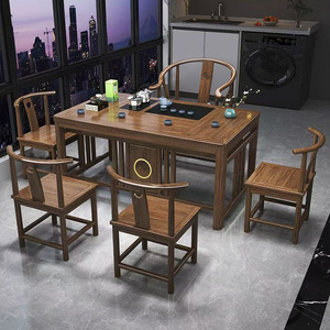 新中式阳台茶桌椅组合实木泡茶桌小户型茶桌一体一整套禅意喝茶桌