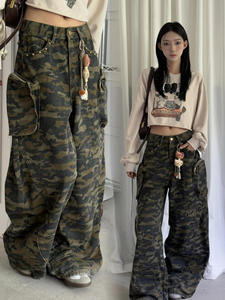 ME KAKAMEE十三行秋美式复古迷彩宽松工装牛仔裤子(配公仔) C0567