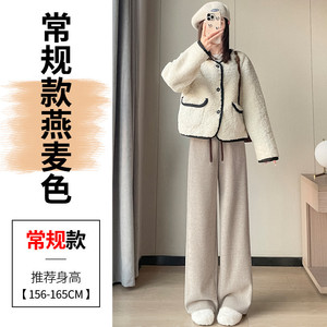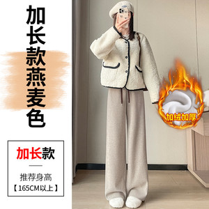 现货现2025秋冬新款高腰羊绒糯米裤窄版直筒裤休闲阔腿拖地裤女