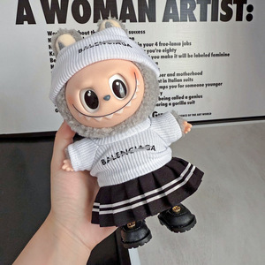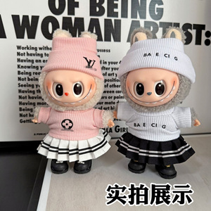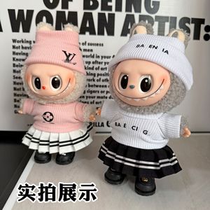 17cm一二三代拉布布娃衣VL老花大牌着替套装labubu衣服百褶裙鞋子
