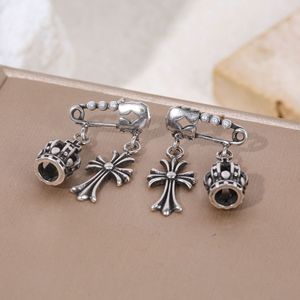 新款时尚高级感设计别针十字架黑色珍珠皇冠个性冷淡风甜酷风耳环