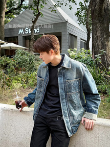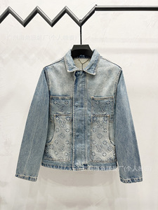 驴家秋冬新款满印钢印浮雕字母丹宁牛仔外套复古夹克男女驴家外套