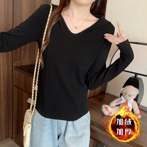 连帽卫衣打底衫女2025新款秋大码胖mm显瘦长袖t恤鱼骨正肩上衣