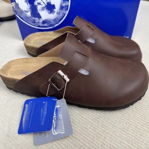 全牛皮男女百搭复古真皮半拖舒适软木勃肯鞋平底外穿休闲包头拖鞋
