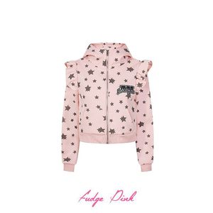 Fudge Pink 25秋季New酷甜可爱星星颜文字刺绣长袖短款外套