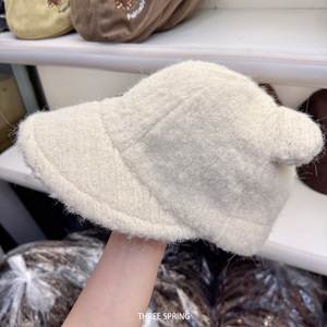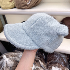 批发韩国2025年早秋新款大檐羊羔毛绒耳朵报童帽大头围护耳八角帽