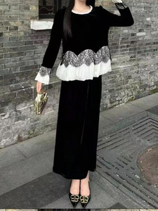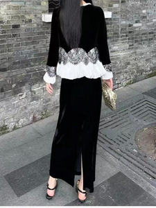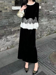 赫本风气质丝绒蕾丝长袖上衣半裙女装2025秋冬新款名媛时尚两件套