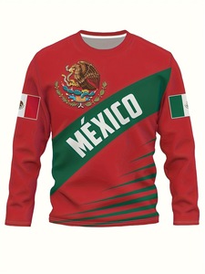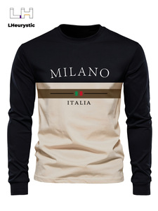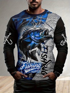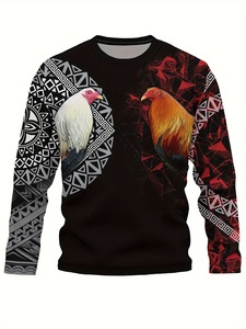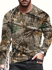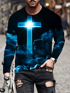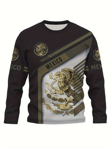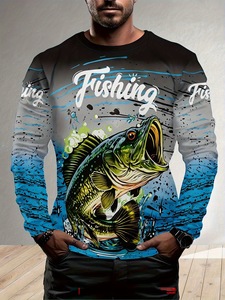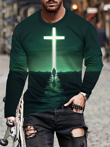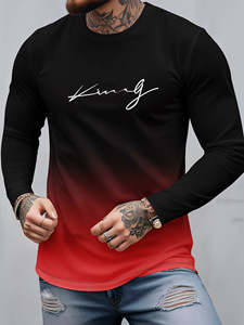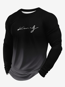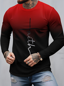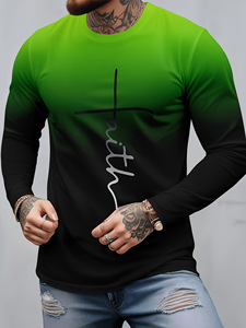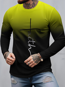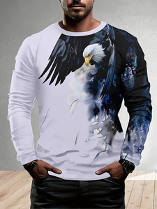 亚马逊2025跨境欧美新款长袖T恤圆领套头简约休闲3D数码印花男士