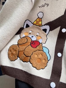 可爱卡通氛围感毛衣外套女秋冬2025新款宽松慵懒风设计感针织开衫