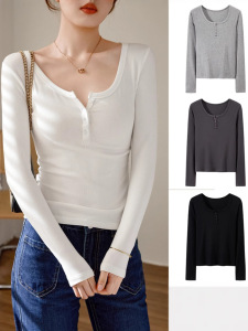 白色打底衫女2025秋冬新款美拉德风修身显瘦正肩长袖T恤上衣A7100